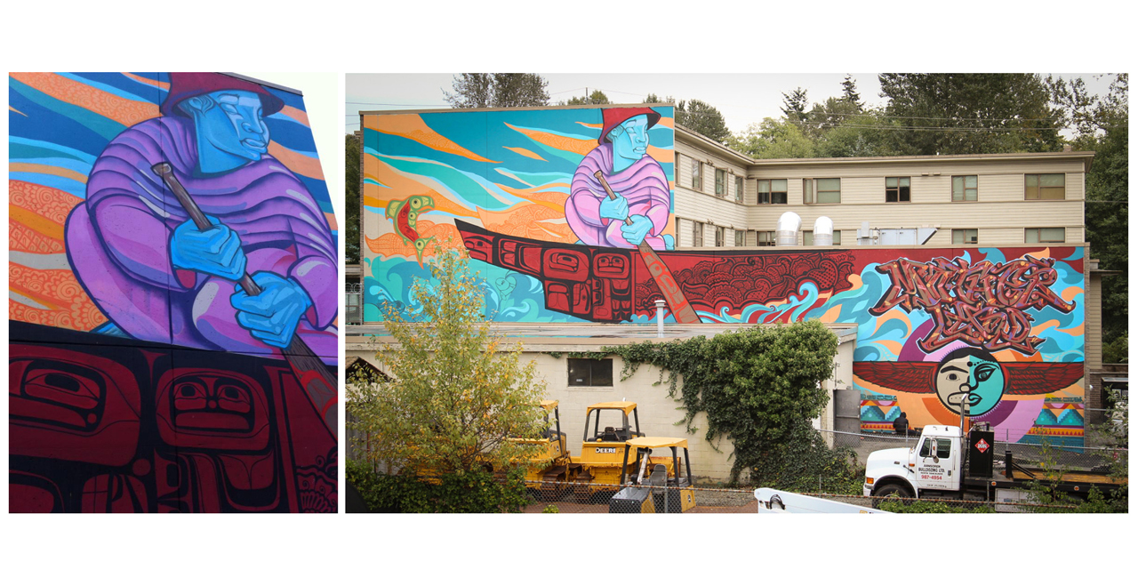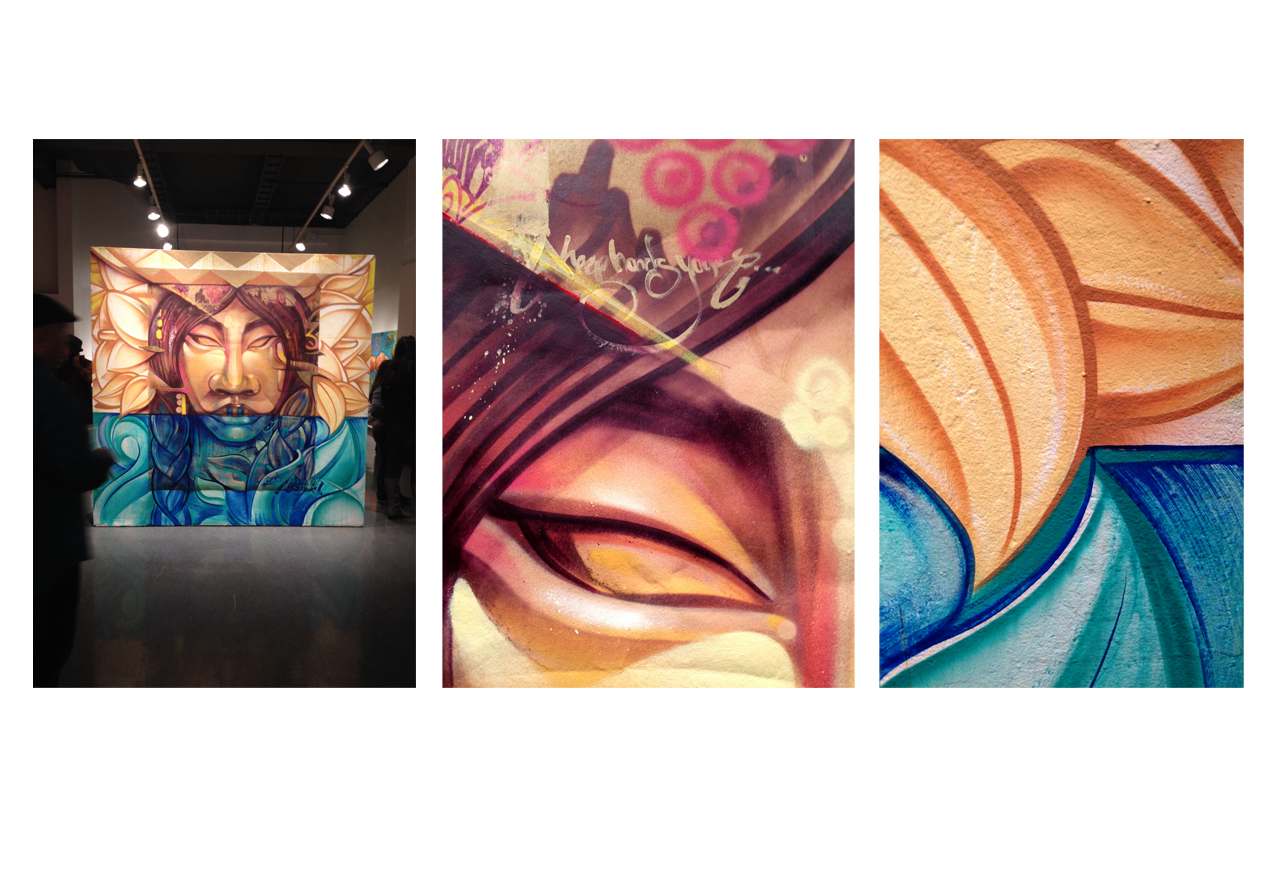 My mural practice is a tool I use to explore history, geography and people. I use murals to speak about things I see as hidden, forgotten, underrepresented or down right complicated. I marvel at the ability to see instantly what is happening in places like Ferguson, Mexico, or how a revolution can be planned via Facebook. Is this addiction to instant access making us numb to long term thinking? What will we do 50 years down the line when our land is filled with all the waste of the highly technical industries, our resources are depleted and pollutants poison our systems on the planet and in our bodies? Can we change the course of destruction we are on? Either way, we are all wading through these same waters together. NO PARKING
